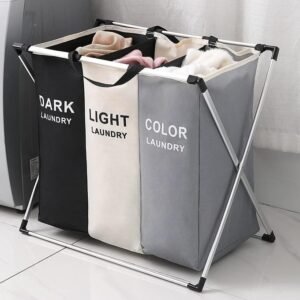 3 Grids Laundry Basket Foldable Dirty Clothes Organizer Bathroom