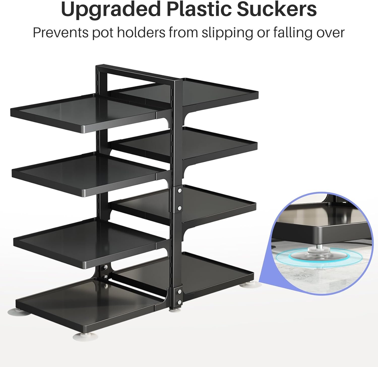 Kuhifadhi vyombo vya kupikia kwa mpangilio sasa ni rahisi zaidi kuliko hapo awali! Pamoja na mpangilio wa vyombo vya kupikia na sufuria wenye tabaka 8 unaoweza kurekebishwa, unaweza kuhifadhi kila kitu kwa mtindo na bila vaa.
