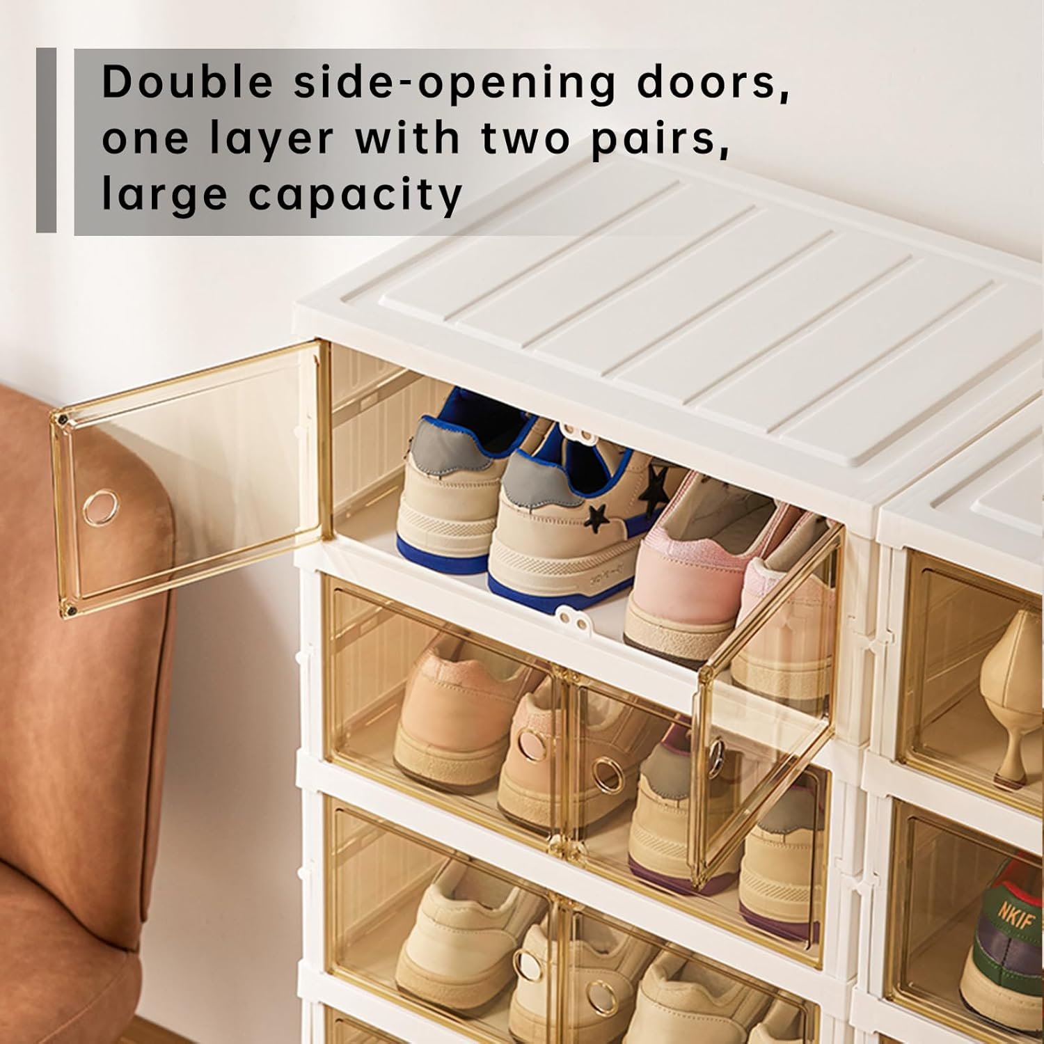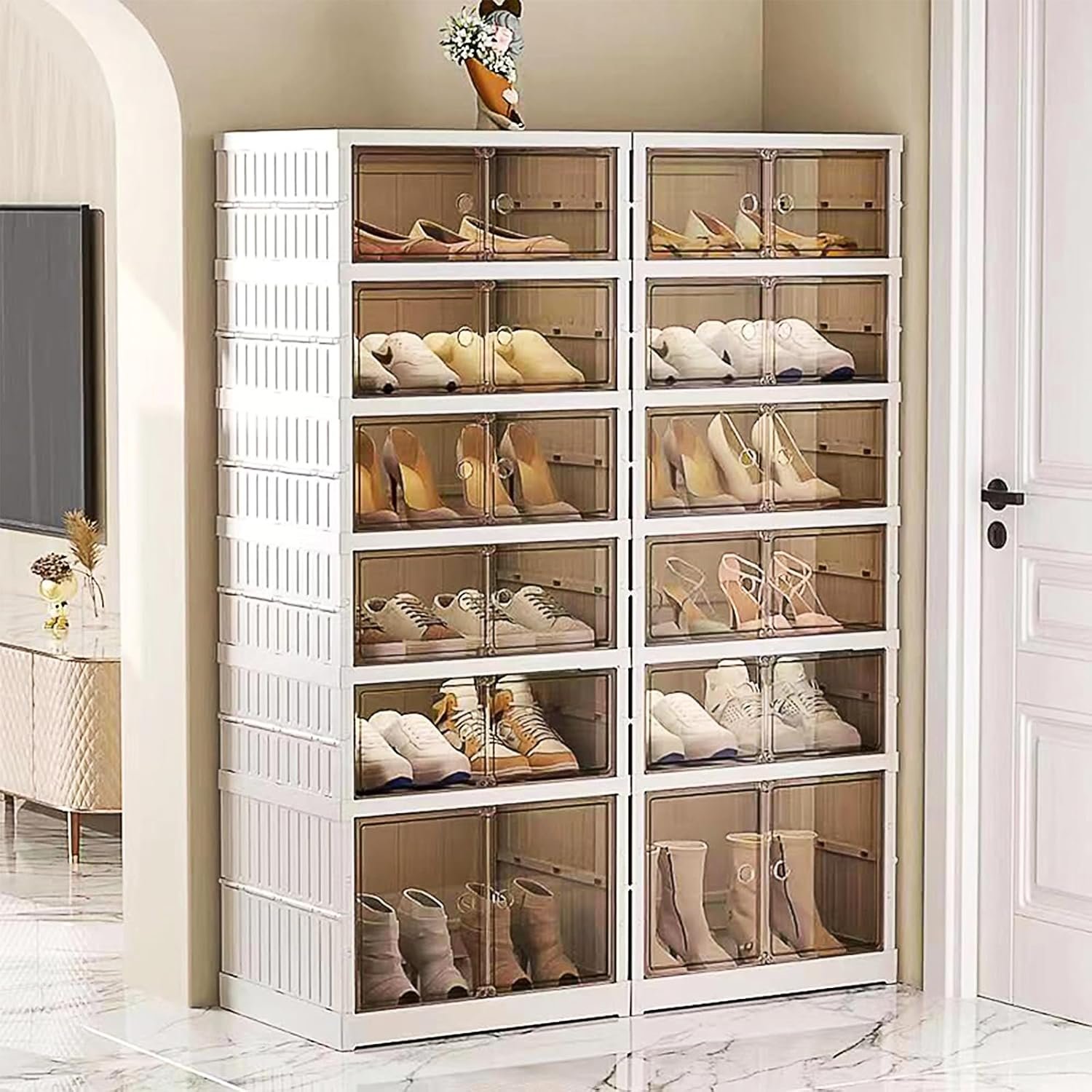 ๐ช Mlango wa mbele wazi na wa uwazi Unaweza kuona viatu vyako kwa urahisi bila kufungua kila kisanduku.
