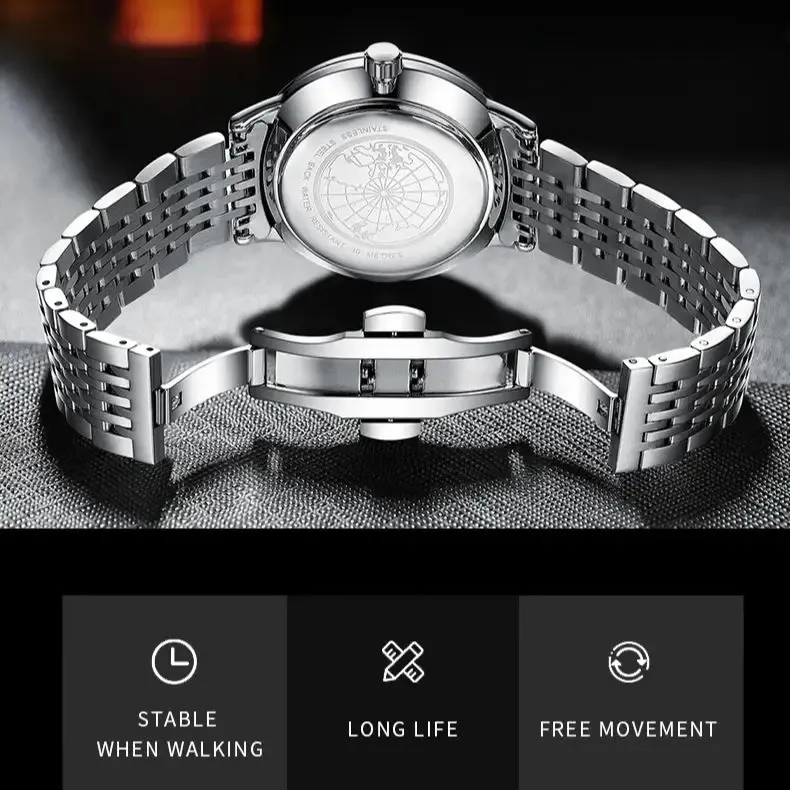 Waterproof quartz watch with a metal strap